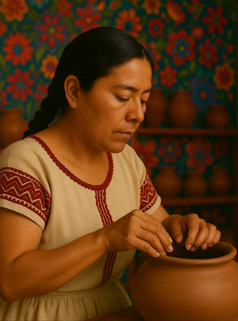 Con precisión y paciencia, la artesana moldea cada curva y textura de la olla de barro, resaltando la belleza en cada detalle. Su taller, vibrante y lleno de color, refleja el arte que imprime en cada pieza. Cada línea, cada acabado, es el resultado de un oficio perfeccionado con dedicación, donde la tradición cobra vida […]