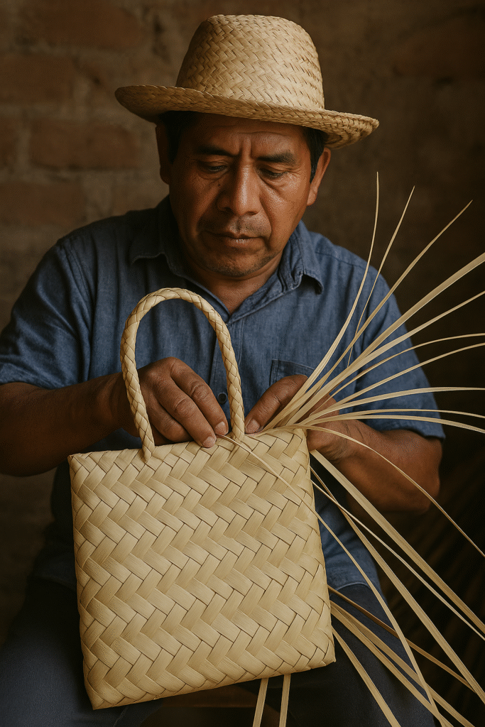 Un artesano mexicano, con manos hábiles y llenas de historia, entrelaza con precisión cada fibra de palma para dar vida a una bolsa única. Su concentración refleja el amor por su oficio, manteniendo viva una tradición que ha pasado de generación en generación. El tejido, firme y detallado, es más que un objeto útil: es […]